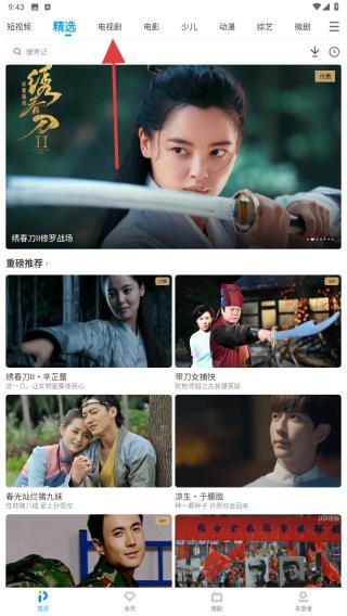 1、打开pp视频APP进入到首页内,点击上方导航栏中切换电视剧的标签。
