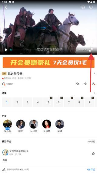 4、在播放界面内,点击右侧向外延展的箭头图标,即可全屏进行播放。