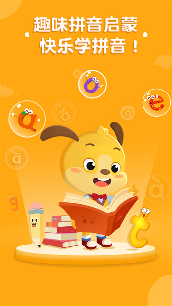 3.快乐学习:融合了笔顺、字母发音、汉字拼音,以可爱的卡通插图和高品质的动画,让小朋友在轻松的氛围下,掌握标准的拼音发音与拼读。