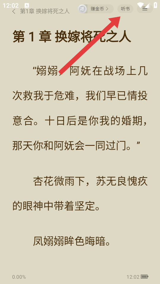 3、关闭提示后,点击页面右上角的听书按钮,切换到听书模式。