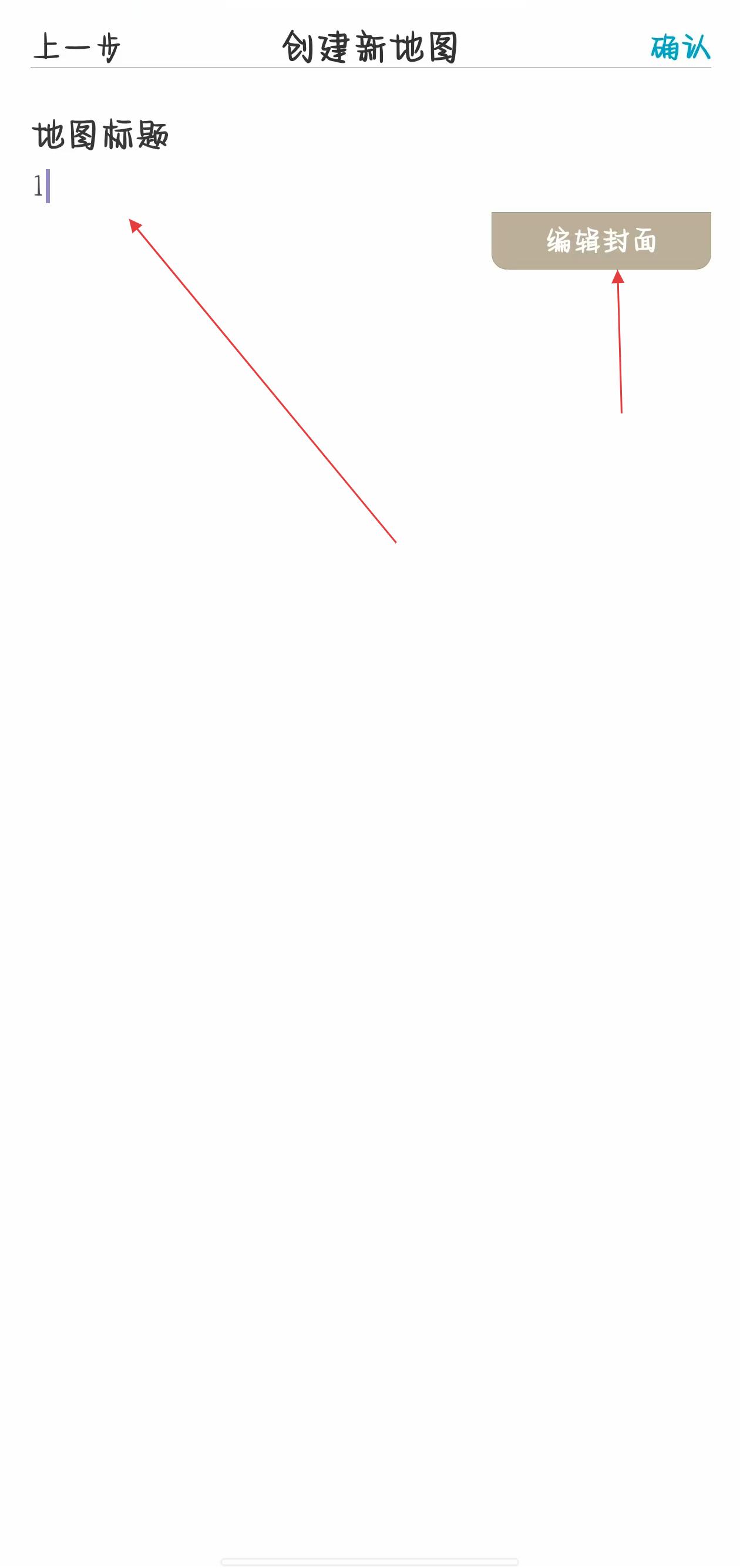 3、进入地图标题设置页面,输入地图标题,也可点击编辑封面按钮设置地图封面,完成后点击右上角确认按钮。