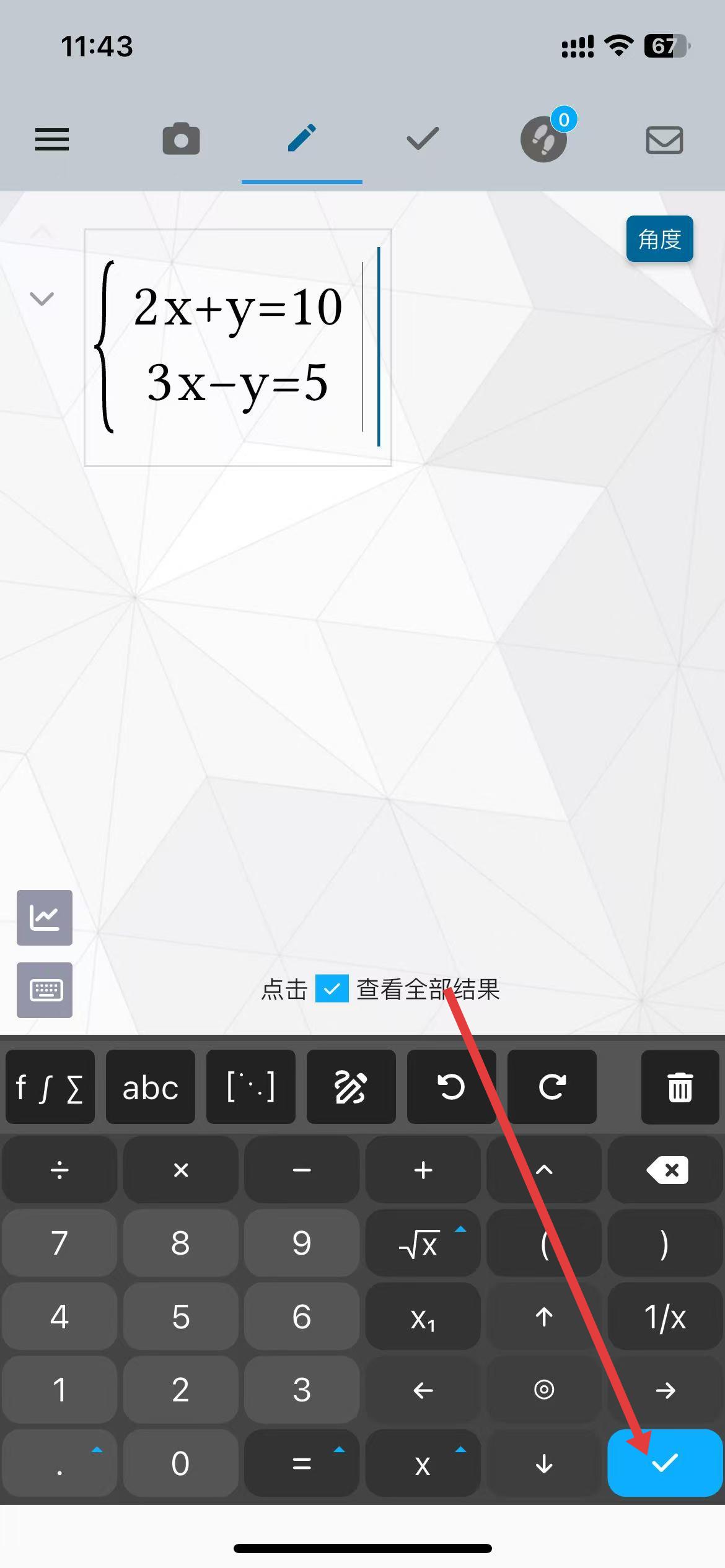 只需单击即可输入算式:在相机上一键单击,即可使用功能强大的人工智能技术,输入手写和排印的数学问题。或者,使用与老师一样的数学符号,在计算器中输入数学表达式——问题输入非常轻松,因为它“看上去很顺眼”!