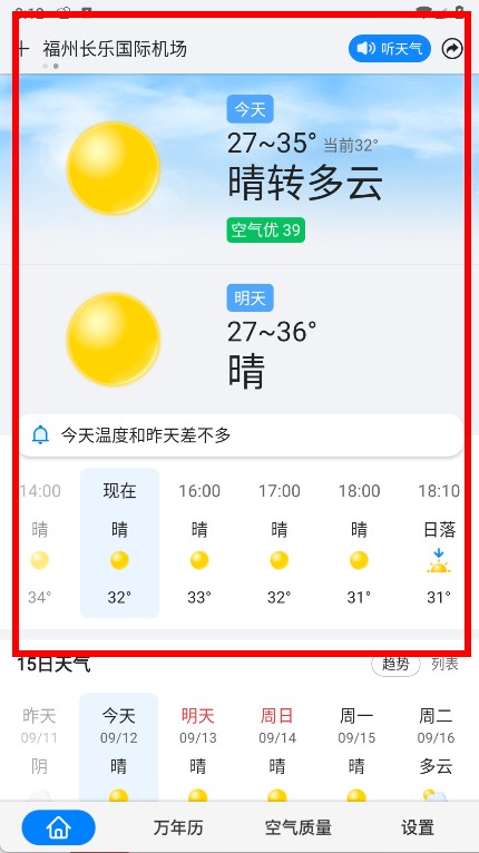 3、老年日常规划:老年人可通过超大字体查看当日天气,根据温度变化调整室内外活动时间,如高温时选择早晨或傍晚外出锻炼,低温时则减少外出,保障身体健康。
