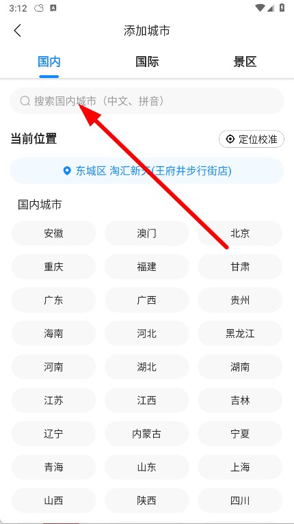 3、输入目标城市名称,或从下方国内城市列表里选择想要添加的城市。