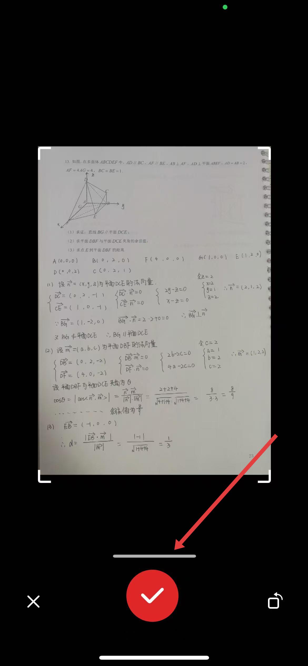 4、选取好作业图片后,点击确认图标,等待app识别并批改作业,之后查看批改结果。