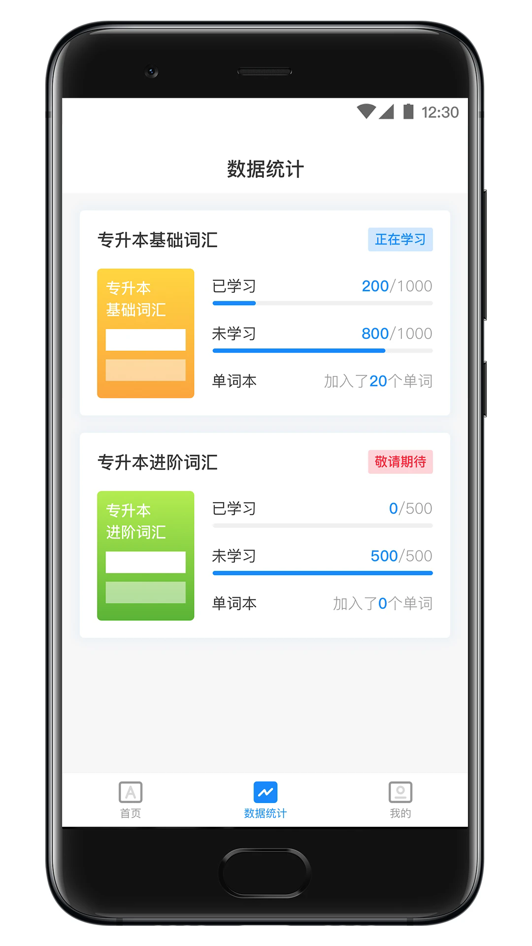 3.可以将你每日背单词的数据进行统计,可以看到误读数以及剩余数等数据。