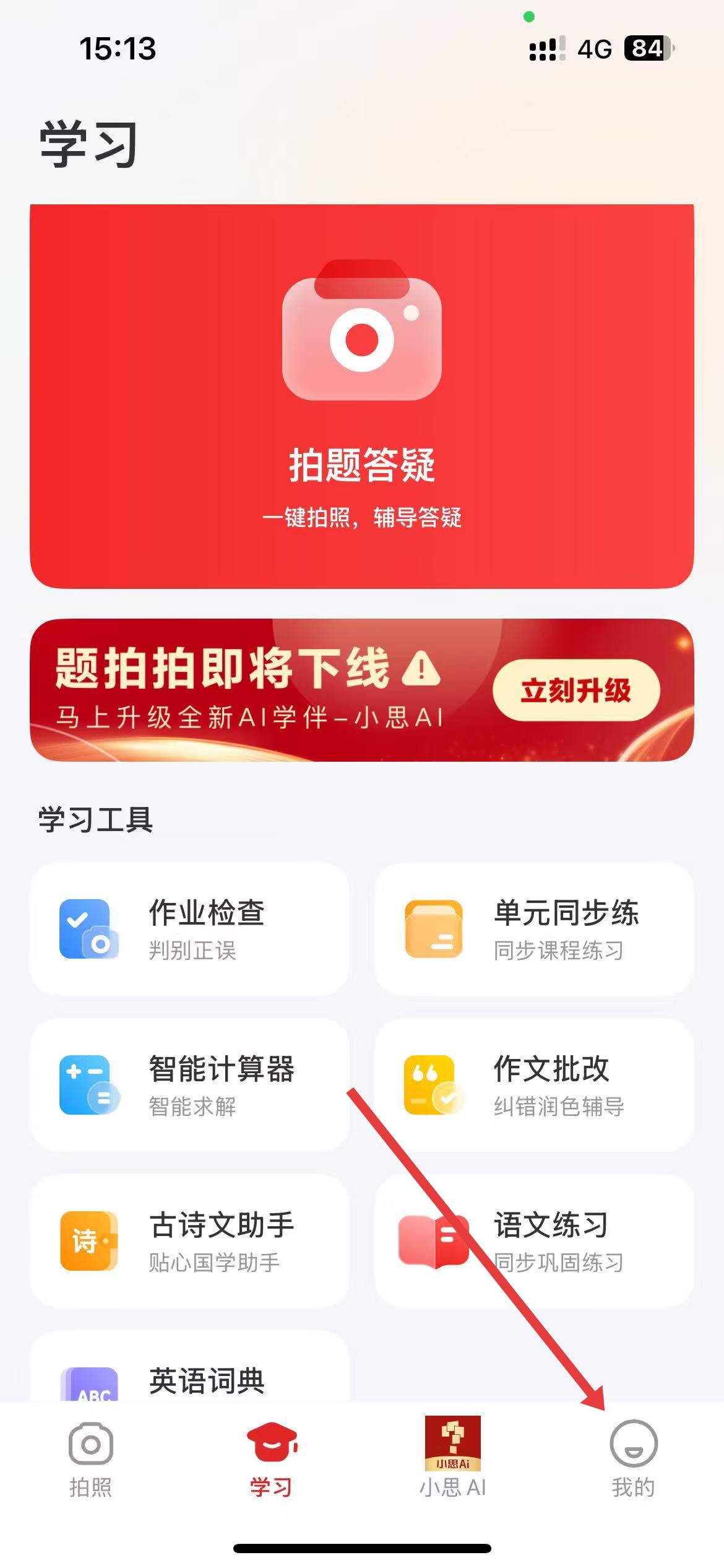 1、打开题拍拍app,点击底部导航栏中我的选项,进入个人相关界面。