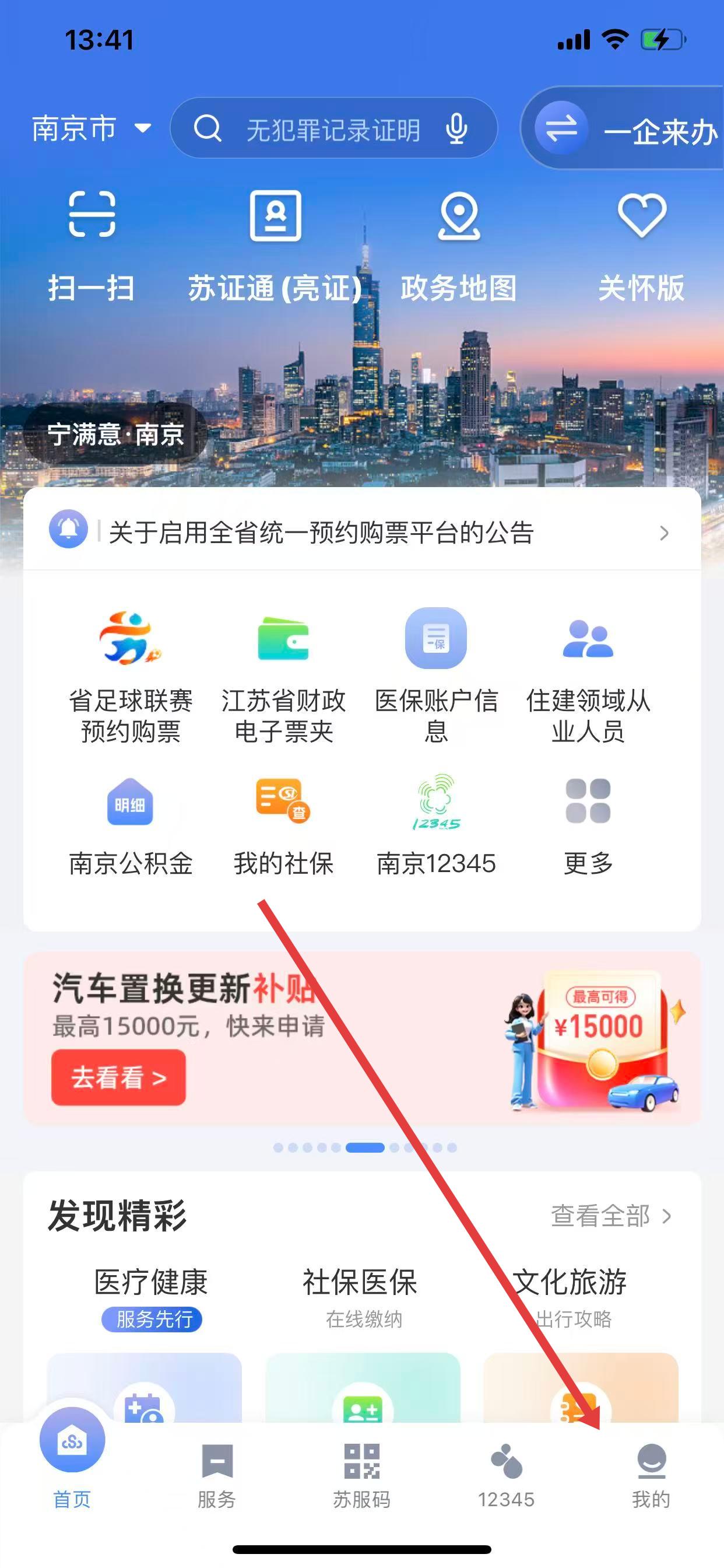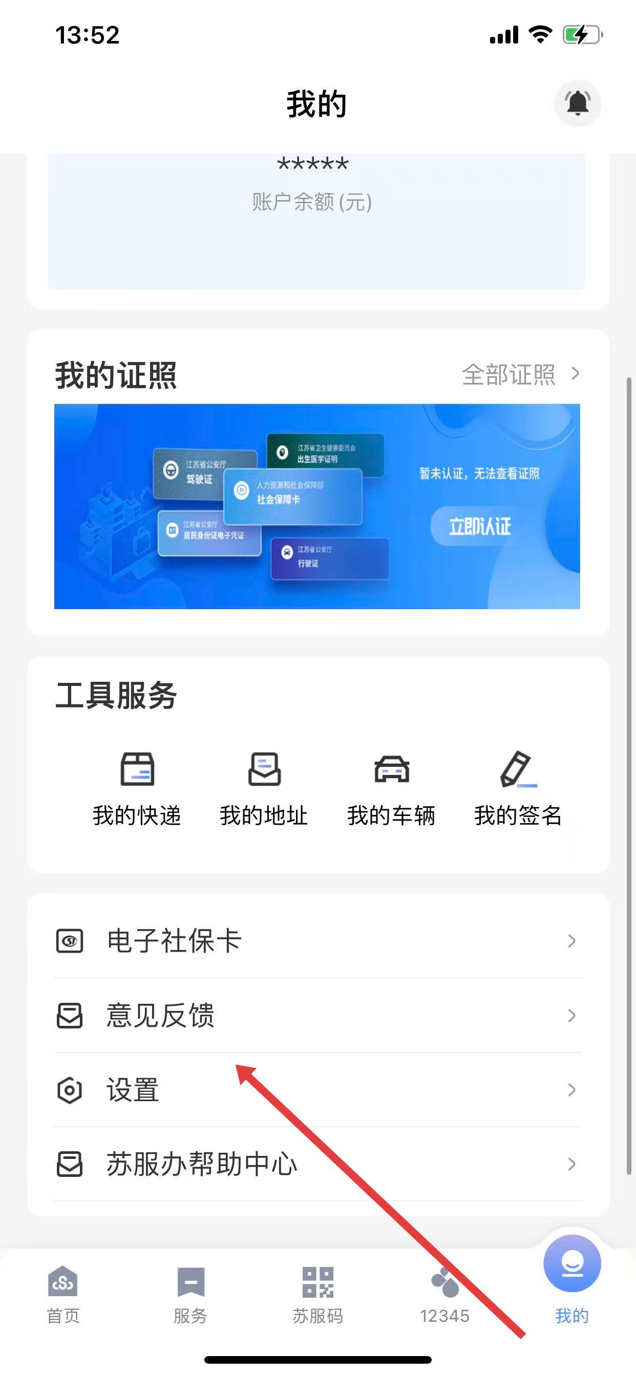 1、打开苏服办App,点击底部导航栏中的我的选项。