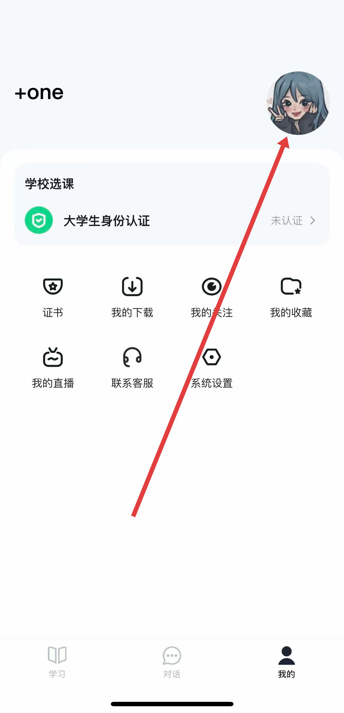 1、打开知到APP,点击底部导航栏我的,再点击页面右上角的头像,进入个人资料页面。