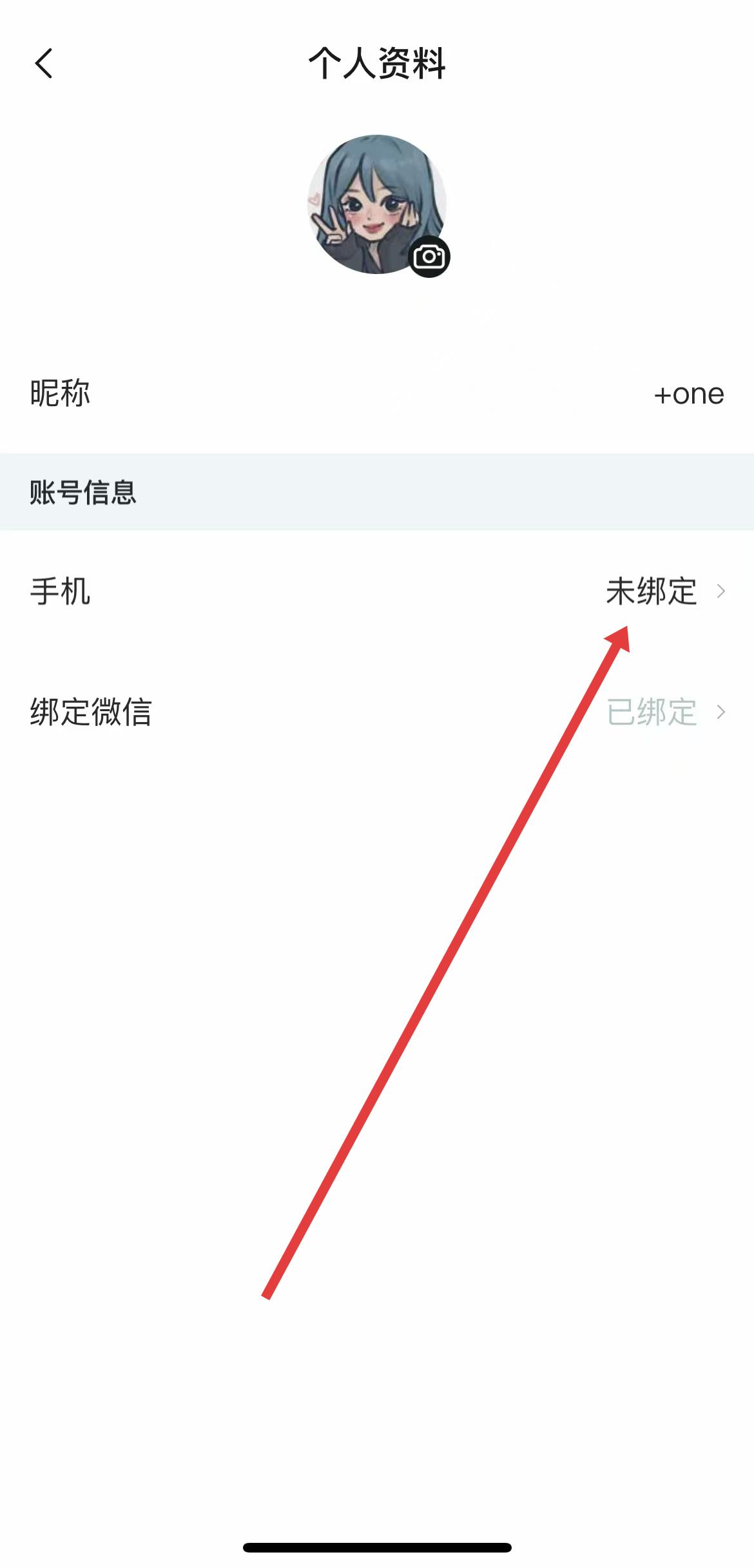 2、在个人资料页面中,找到手机选项,点击未绑定,进入关联手机号页面。