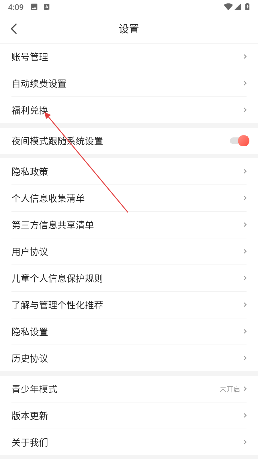 3、在福利中心界面,点击右上角兑换记录按钮,进入兑换记录页面。