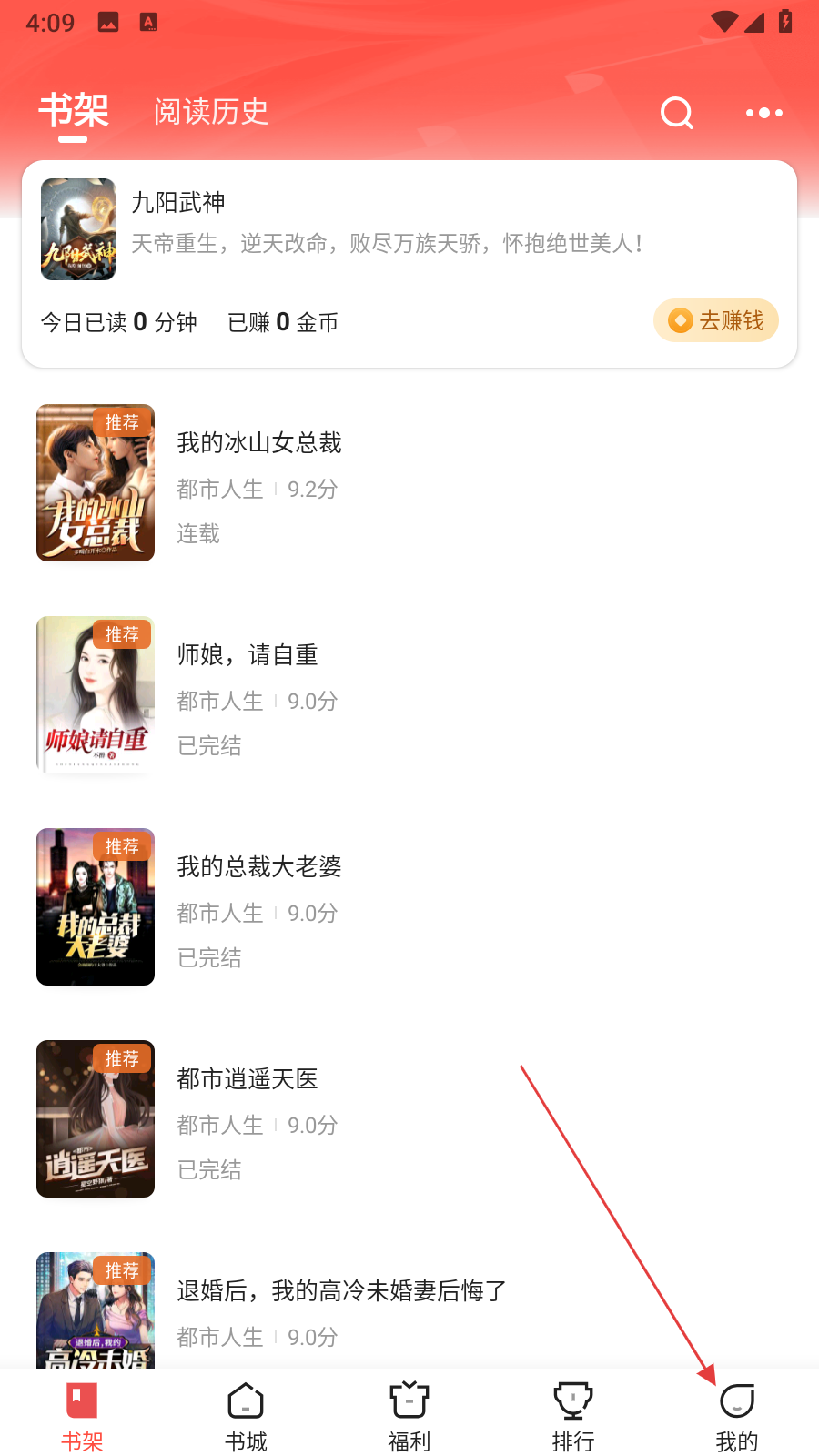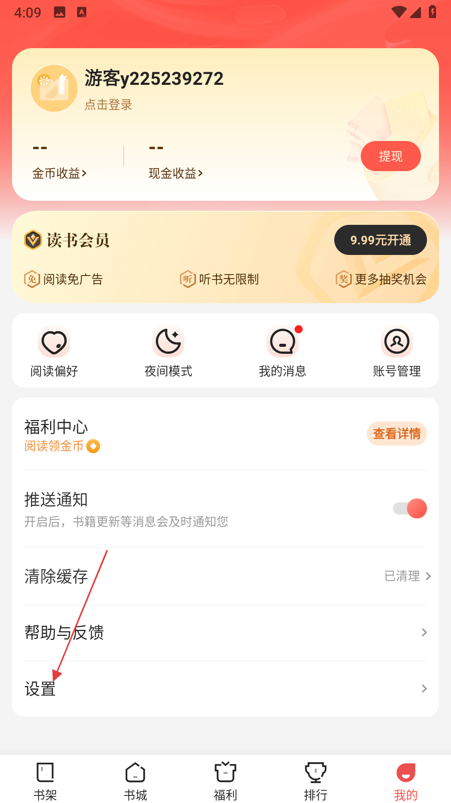 1、打开阅友小说APP,点击页面右下角我的,进入个人中心页面。