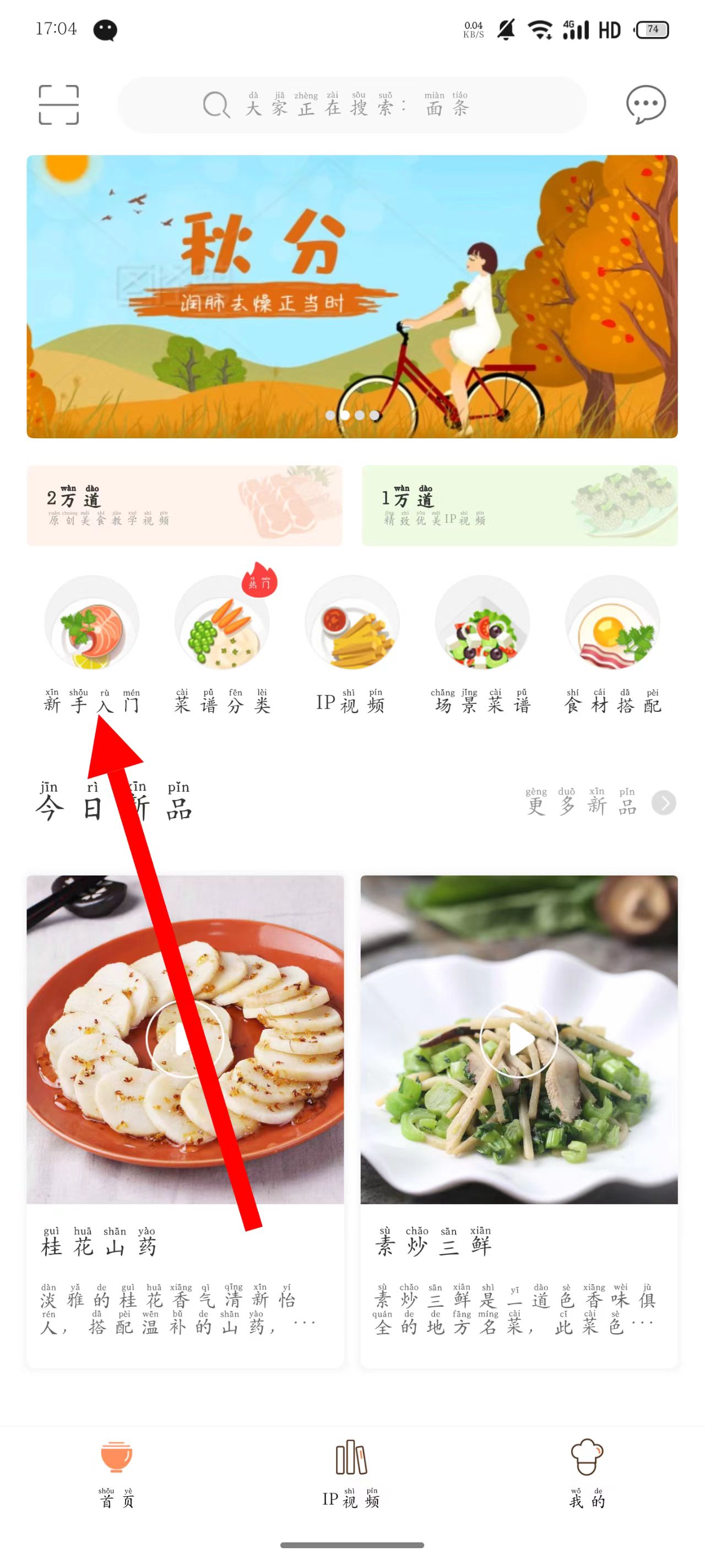 1、打开掌厨,在首页点击新手入门选项,进入新手入门功能页面。