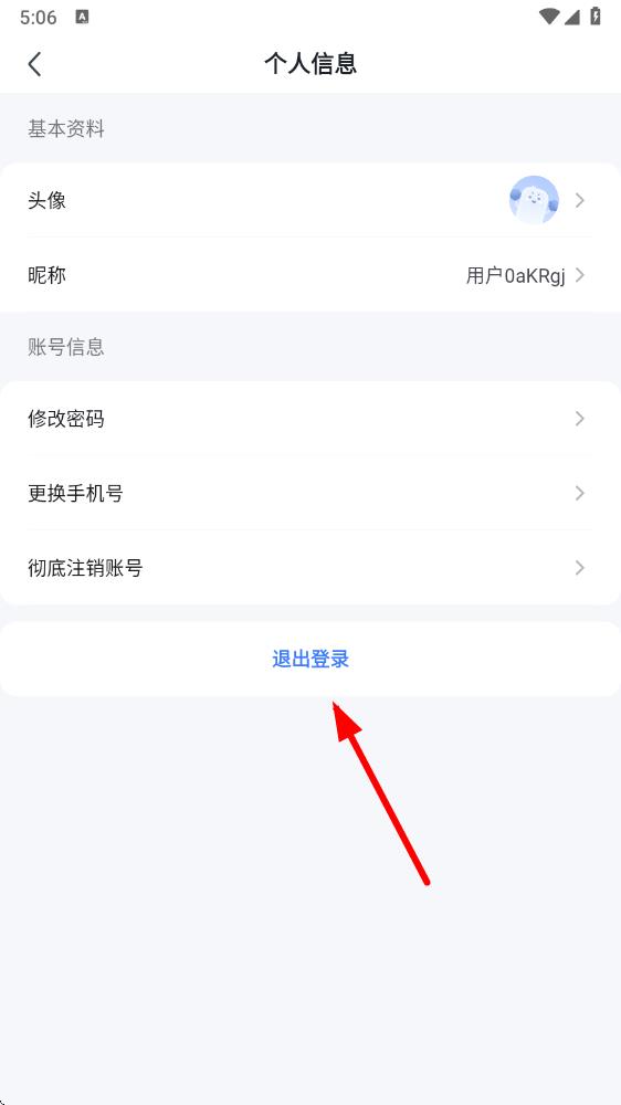 3、在个人信息页面里,点击退出登录选项,退出当前账号。