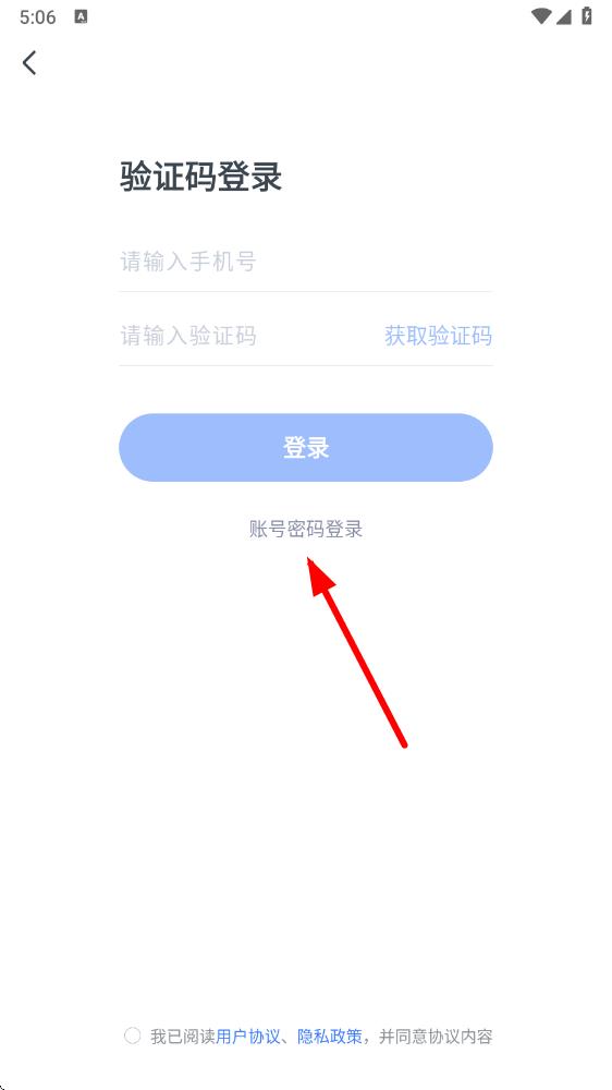 4、退出后,回到登录页面,选择账号密码登录方式,即可使用账号登录。