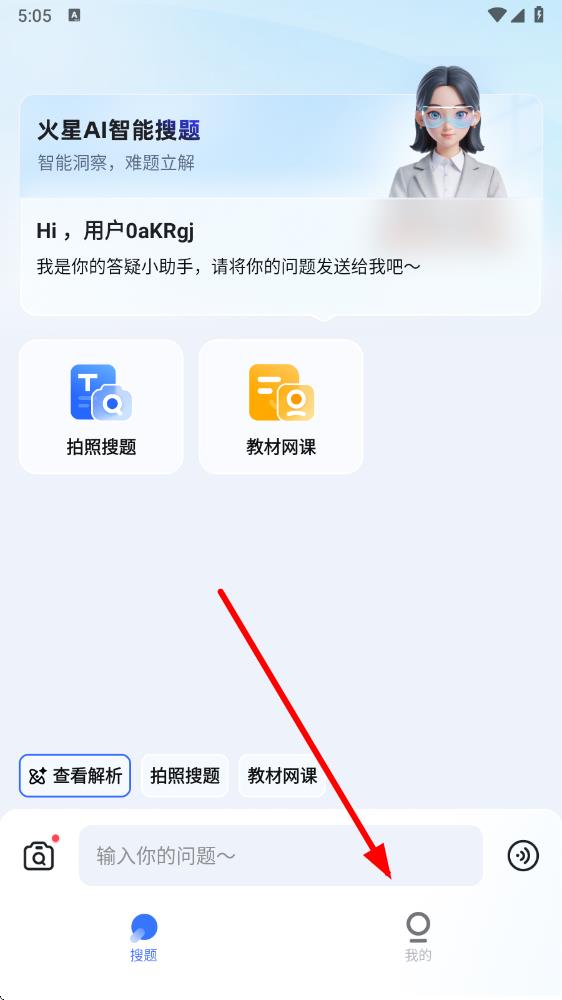1、打开火星搜题app,点击底部导航栏中的我的,进入个人相关页面。
