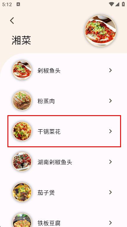 3、在湘菜菜品列表中,选择想要查看做法的菜品。