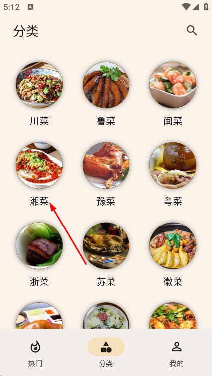 2、随后我们在分类页面,选择菜系,例如湘菜。