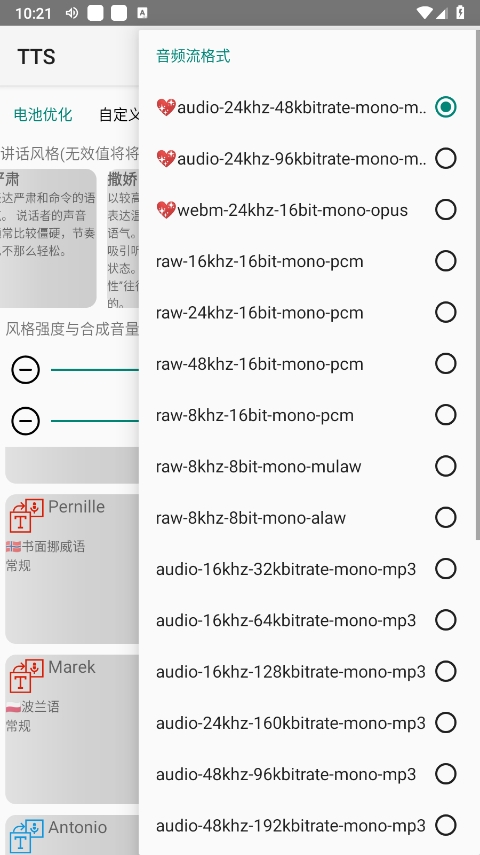 2、跳转到文字转语音设置界面,勾选上tts设置。