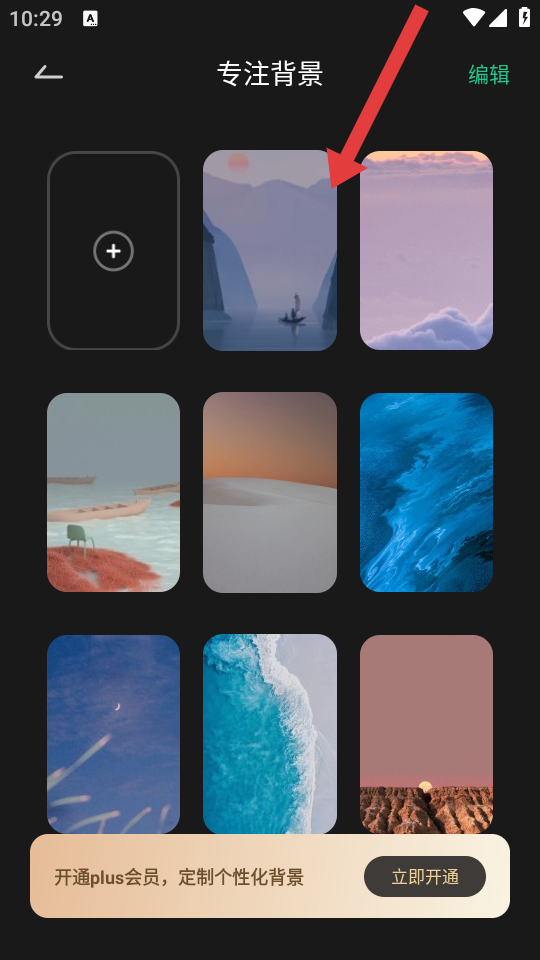 4、在专注背景页面,点击要设置的背景图,即可将其设为专注背景。