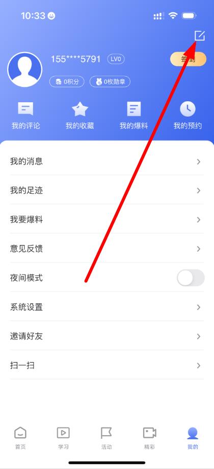 2、在个人界面右上角找到并点击编辑图标,进入个人资料页面。