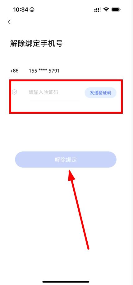 4、然后输入收到的验证码,点击解除绑定即可完成操作。