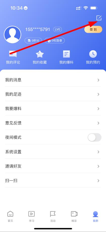 1、打开长安书院app,在我的页面中找到个人页面右上角点击编辑图标。