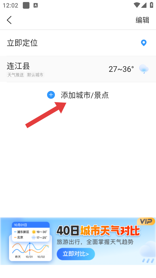 2、在城市管理页面,点击添加城市/景点选项,进入添加城市界面。