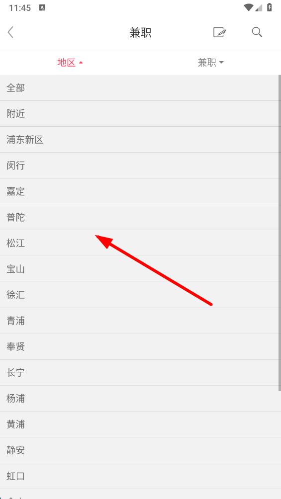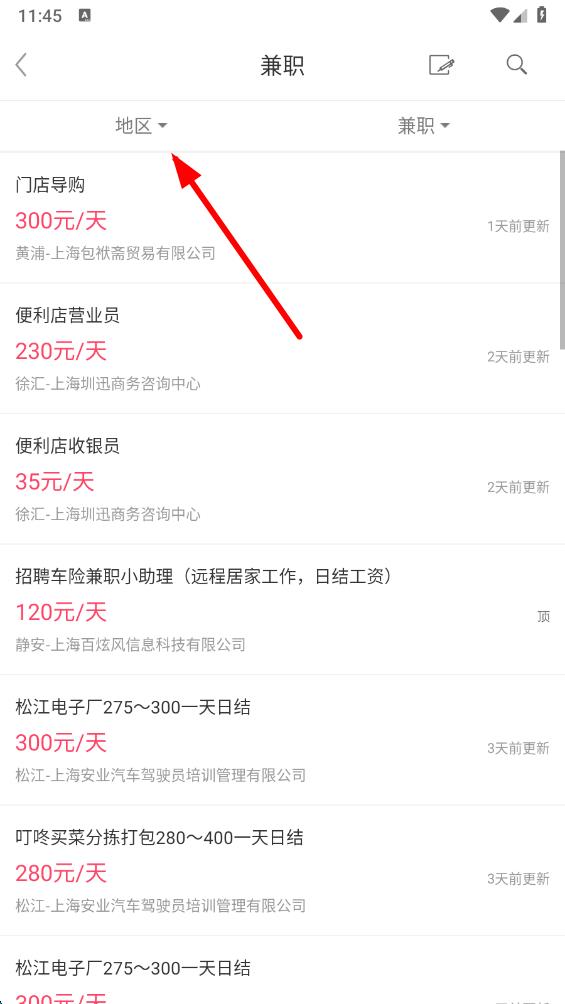 2、在兼职信息页面,点击地区选项,筛选想要找兼职的地区范围。