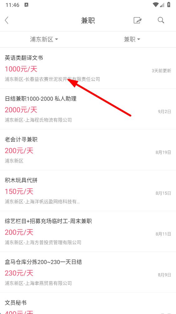 4、浏览筛选后的兼职岗位列表,选择感兴趣的岗位,点击进入详情页。