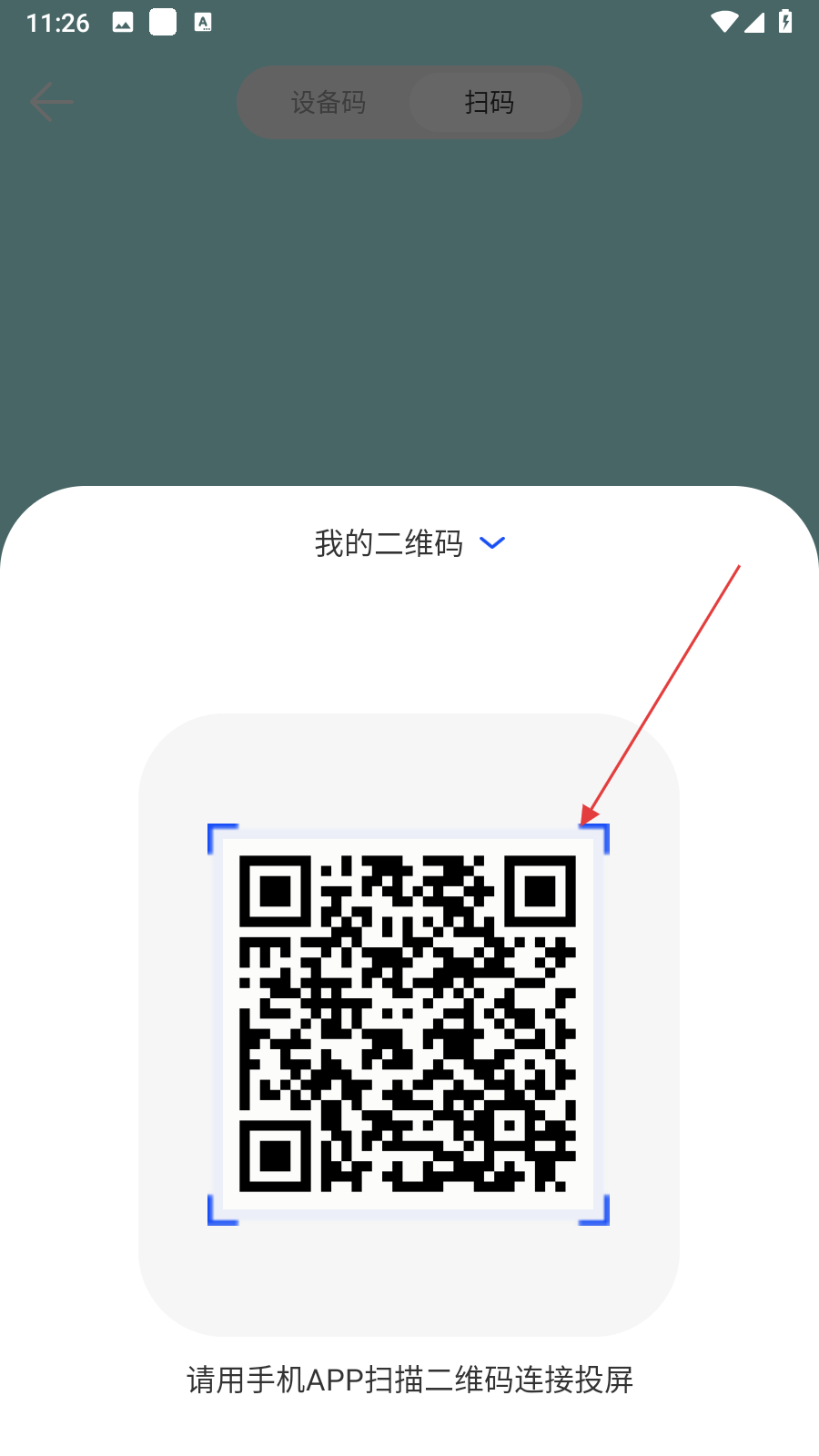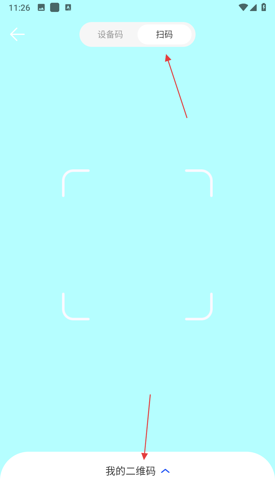 4、在扫码界面中,点击底部我的二维码,展示出本设备的二维码,可供其他设备扫描以建立连接。
