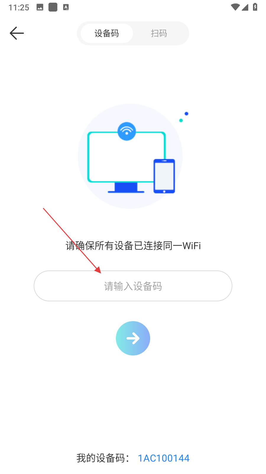 2、在设备连接页面中,若选择通过设备码连接,找到请输入设备码的输入框,准备输入目标设备的设备码。