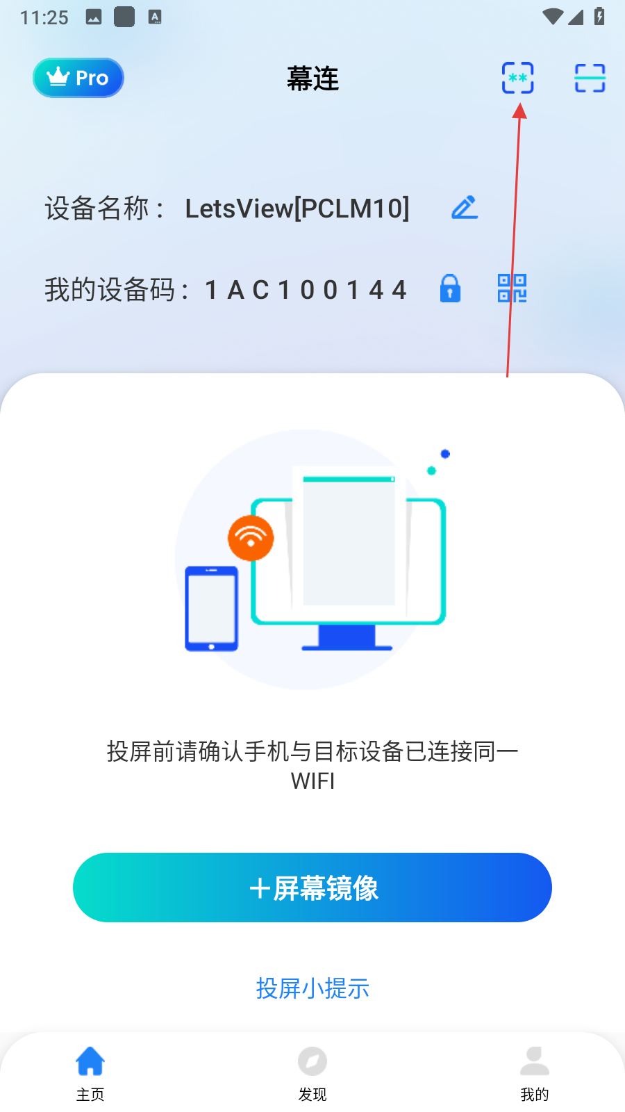 1、打开幕连 APP,点击界面右上角带有扫描标识的第一个图标。