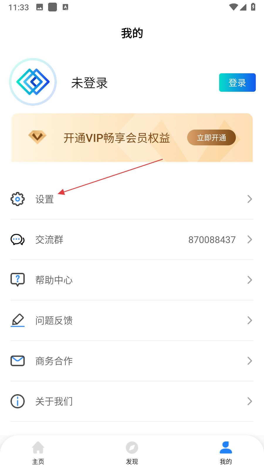 2、在页面中找到设置功能入口,点击进入设置界面。