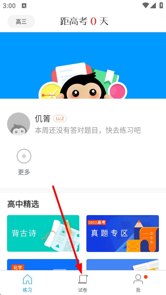 1、打开猿题库App,在底部导航栏点击试卷选项,进入试卷页面。