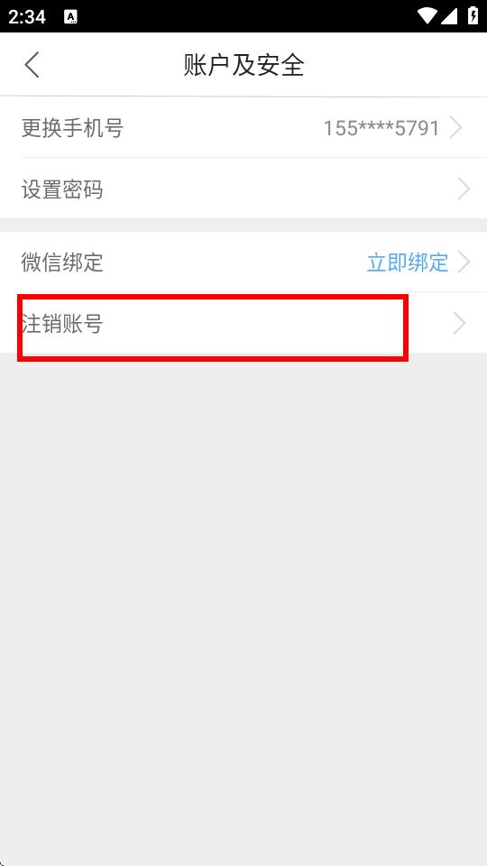 3、进入账户及安全页面后,点击注销账号选项。