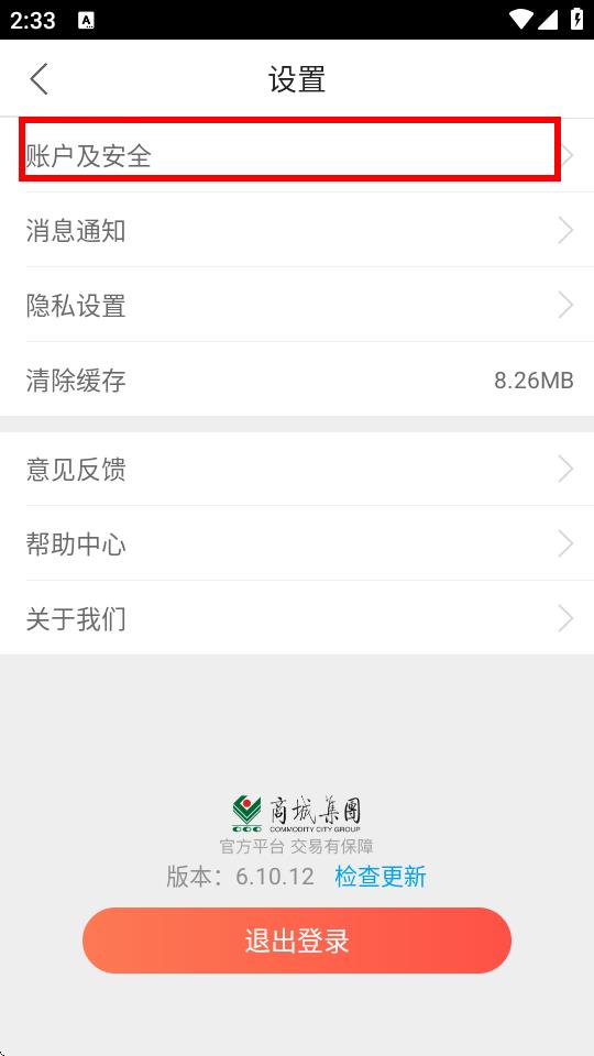 2、在设置界面里,找到并点击账户及安全选项。