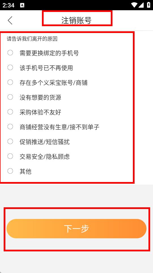 4、在注销账号页面中,选择注销原因,然后点击下一步,按照后续提示操作完成账号注销。
