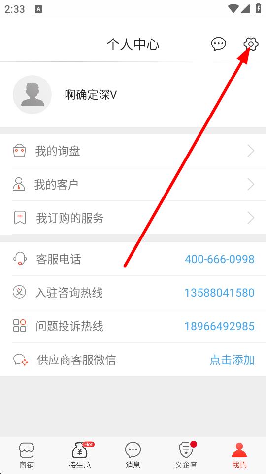 1、在个人中心页面右上角,点击设置,进入设置界面。