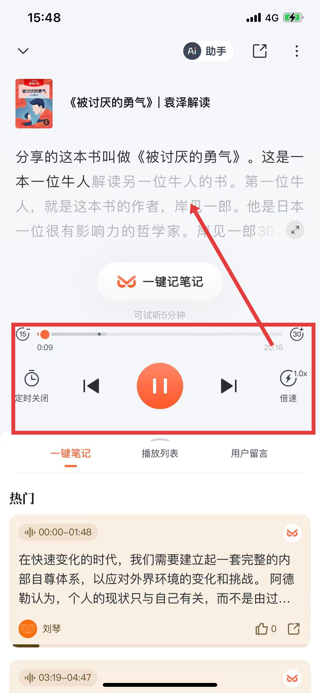 3、点击所选书籍的封面或标题,进入书籍的播放页面。