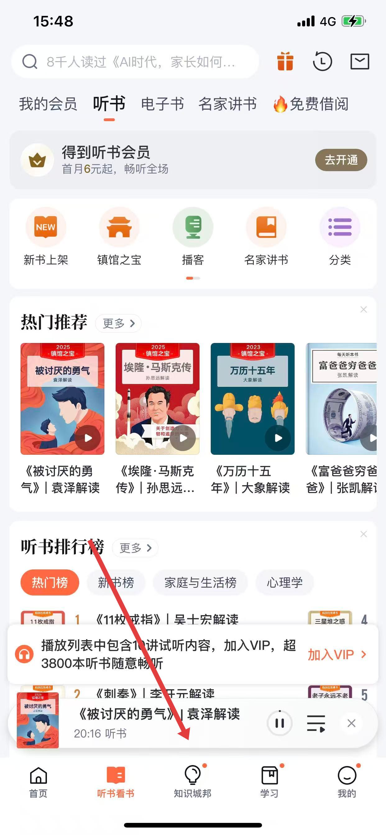 除此之外,「得到」的图书种类分为:干货版、音频版、全本版和系列图书,各种分类,总会有你喜欢的方式,喜欢的内容。和跑步、健身、背单词等 app 的做法一样,「得到」也内设了求知欲排名,可以通过查看排名榜单,了解他人的学习进度,也可以激励自己坚持读书,增长知识。