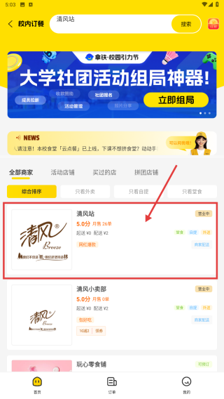 2、在推荐专区页面,选择清风站,进入清风站商品列表页面。