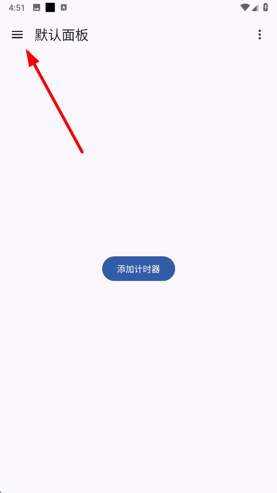 1、打开计时器app,点击左上角的三条横线图标,展开侧边栏菜单。