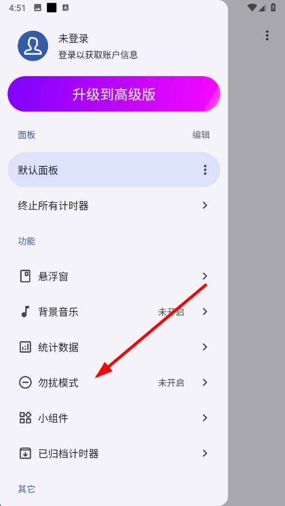 2、在侧边栏菜单中,找到并点击勿扰模式选项,进入勿扰模式设置页面。