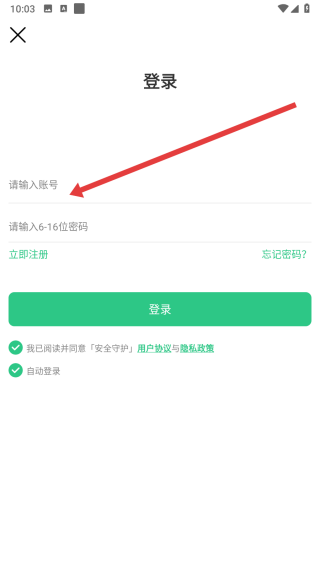 3、进入到账号登录页面中,需先点击勾选我已阅读并同意按钮。