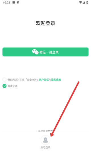 2、在进入到登录页面中时,可点击下方账号登录按钮,切换登录方式。