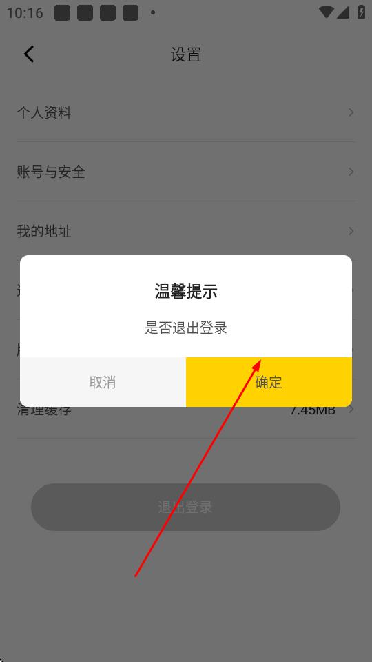 4、在弹出的温馨提示弹窗中,点击确定按钮,即可完成退出登录操作。