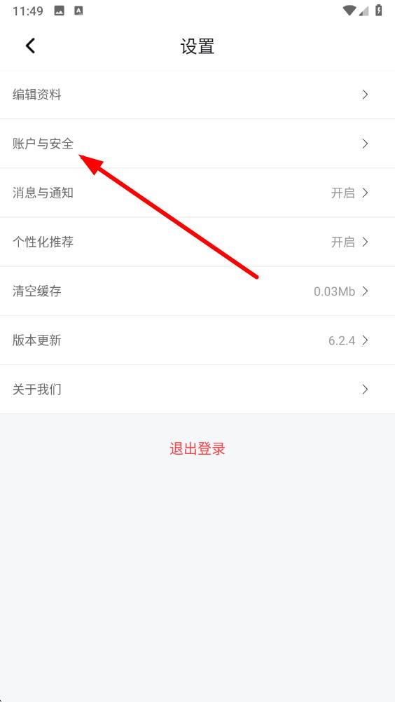 3、在设置页面里,找到并点击账户与安全选项,进入账户安全设置界面。