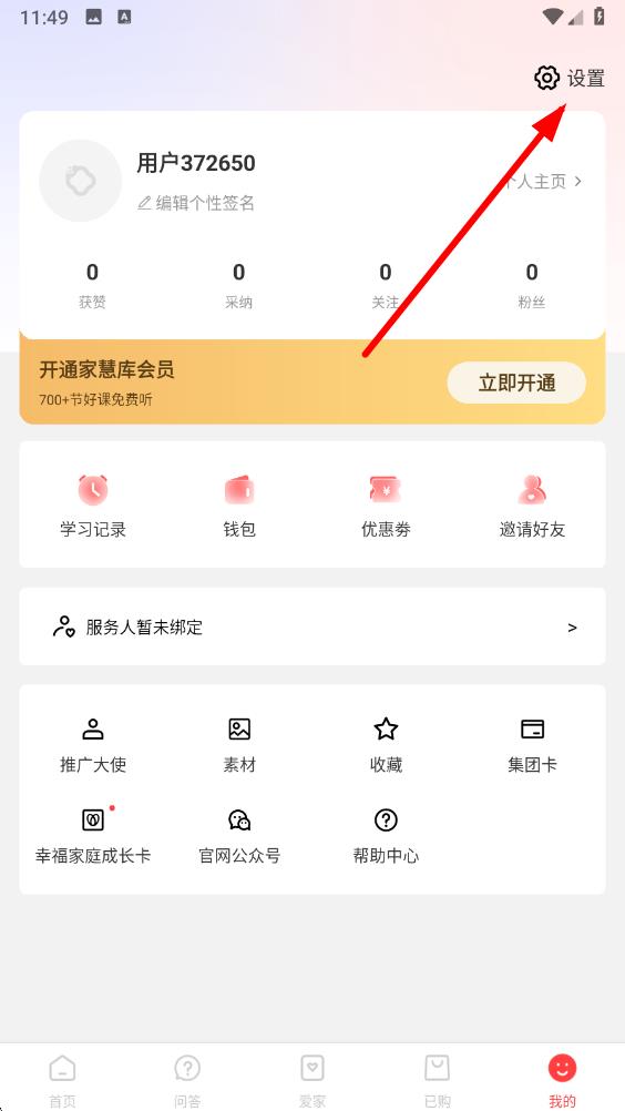 1、打开家慧库app,点击底部导航栏最右侧标有我的图标,进入个人相关界面。