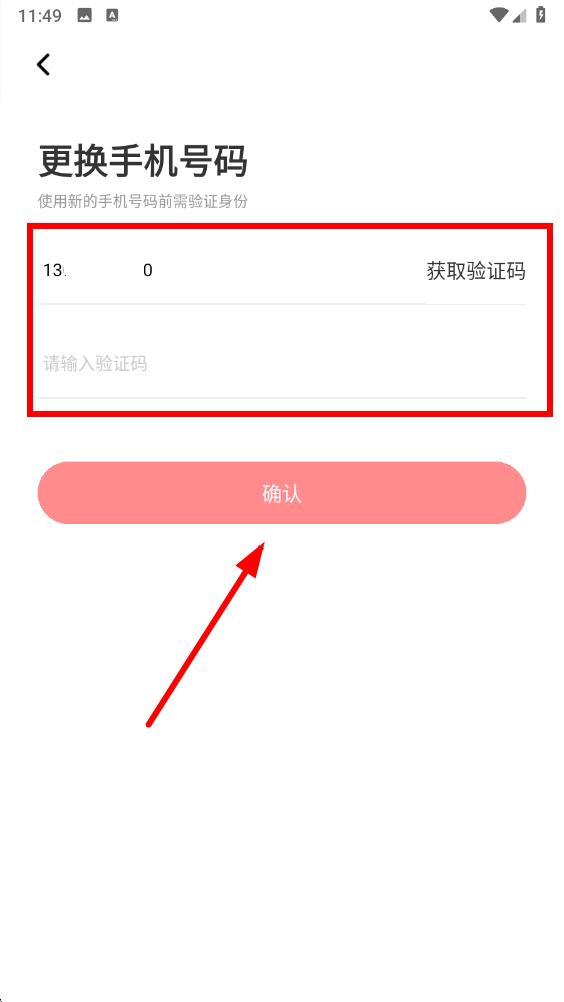5、按提示获取并输入验证码,点击确认后按照后续操作完成更改手机号。